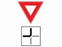 - A vehiculelor care circulă pe drumul prioritar, indicat prin linia groasă pe semnul adiţional;