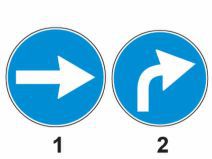 #92 DRPCIV: Care dintre cele două indicatoare obligă la schimbarea direcţiei de mers spre dreapta, după depăşirea locului unde este instalat?