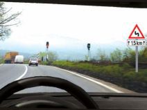 - B o succesiune de curbe în rampă la o distanţă de 1,5 km faţă de indicator, prima curbă fiind la dreapta;