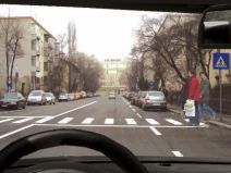 - B daţi un semnal scurt de avertizare, pentru ca pietonii să nu se angajeze în traversare;